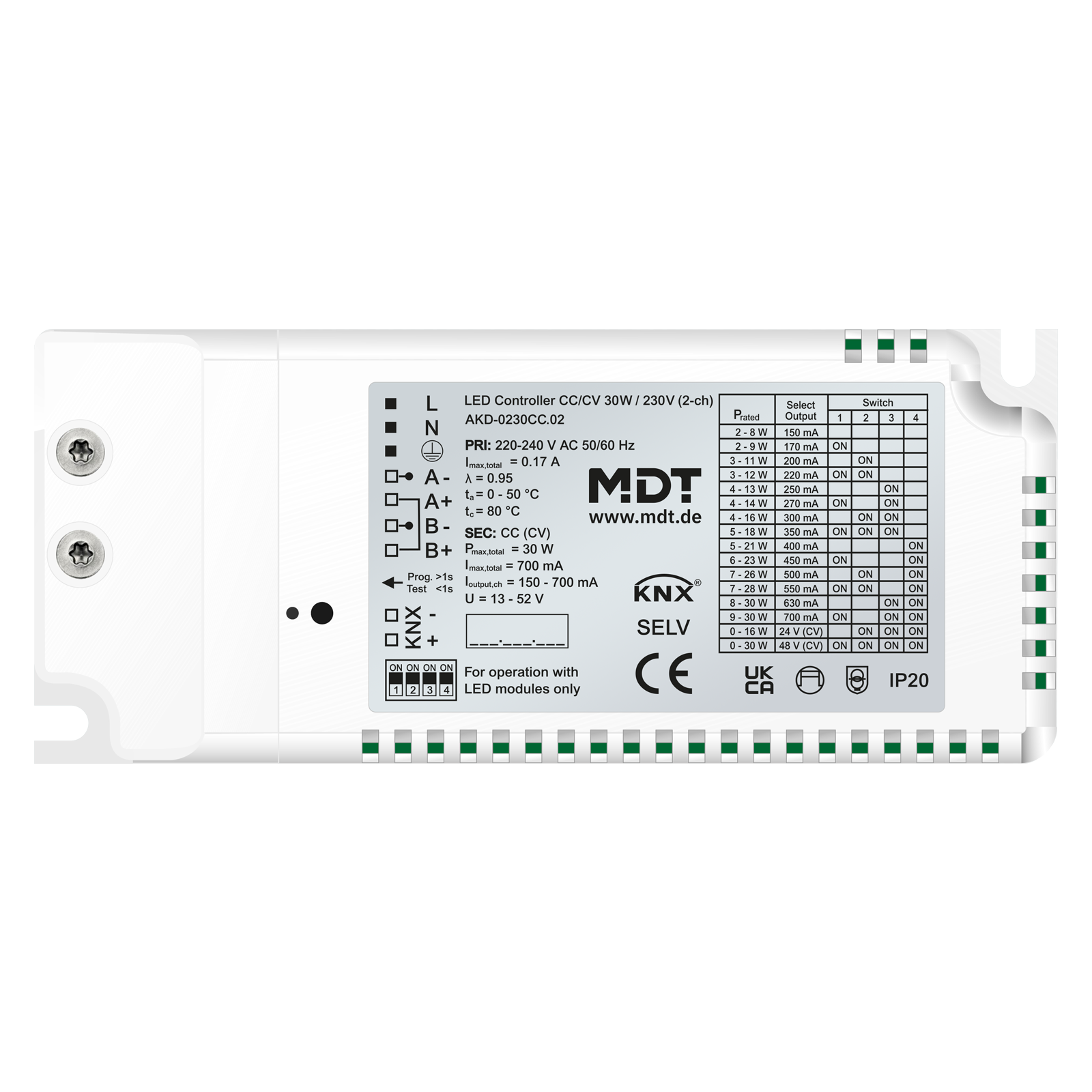 Ελεγκτής LED KNX CC/CV 30 W / 230 V 2 καναλιών