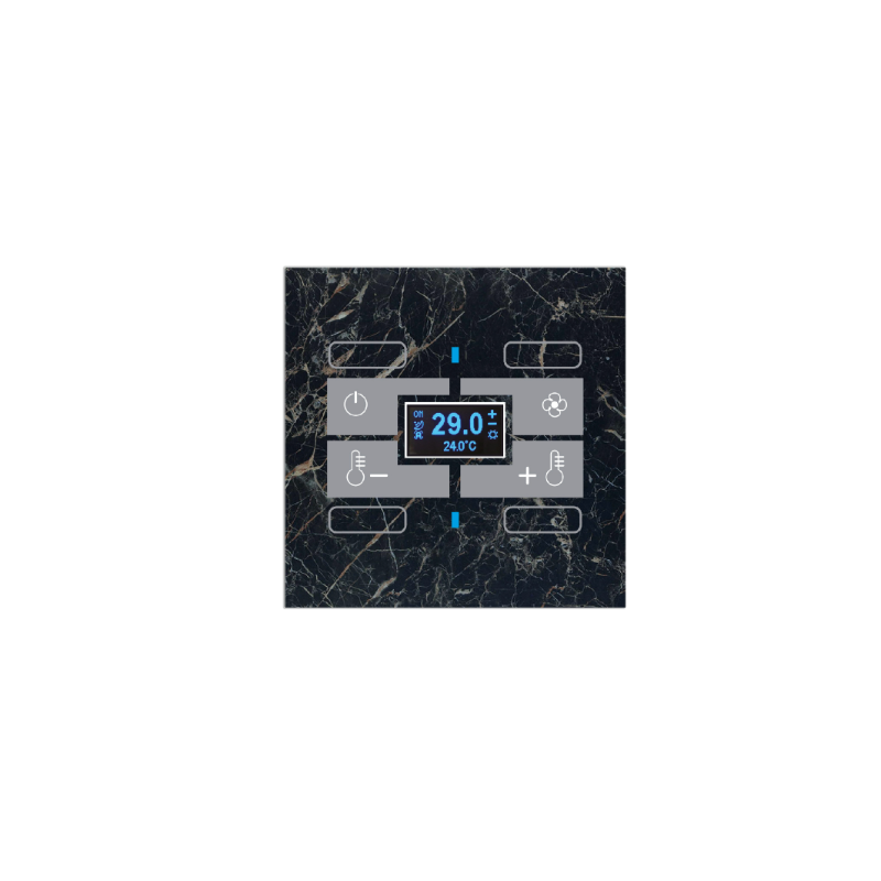 Θερμοστάτης KNX Glass τετράγωνος, σε σχήμα μαρμάρου, μαύρος, με 4 προγραμματιζόμενες λειτουργίες