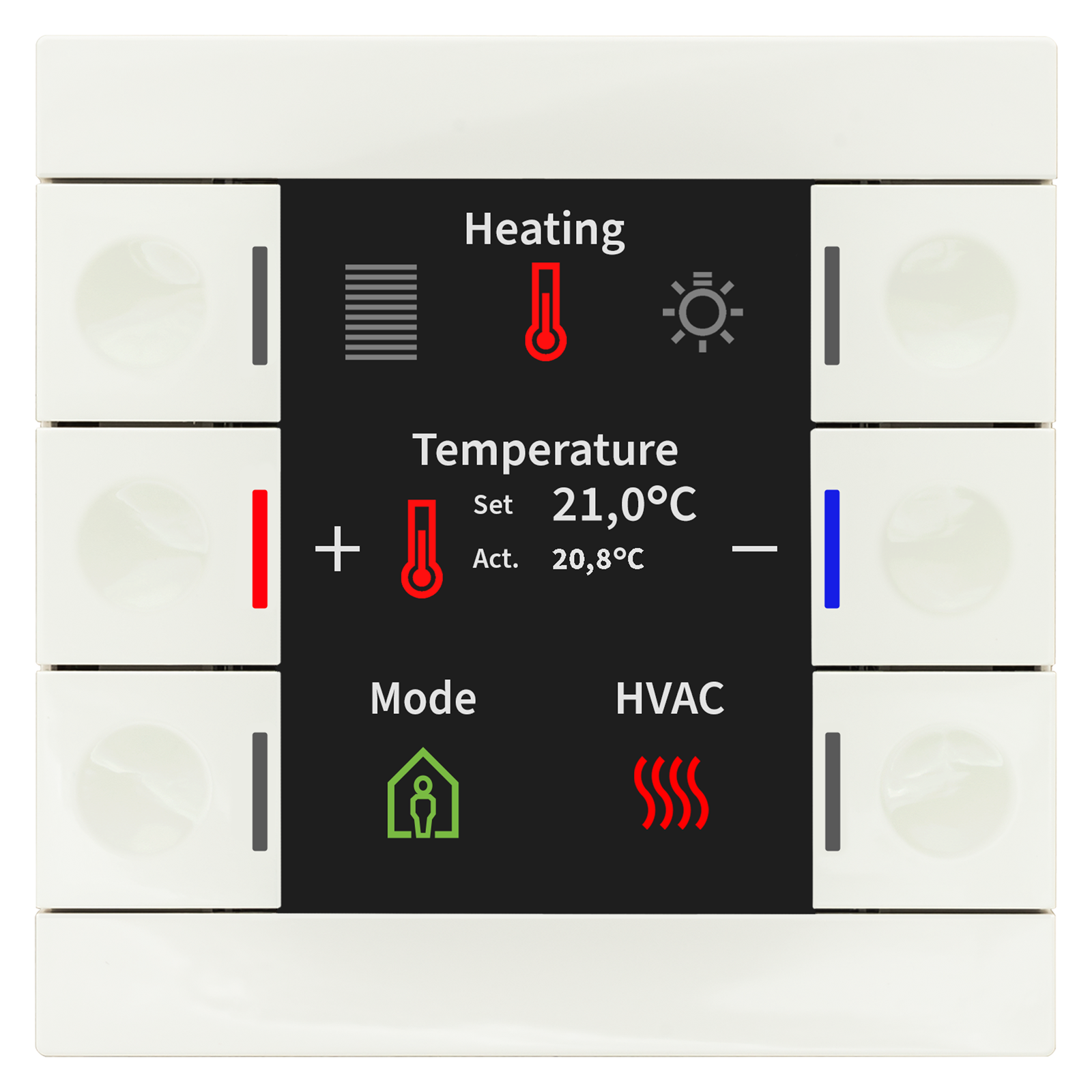 Έκδοση με έξι εργονομικά σχεδιασμένα μηχανικά κουμπιά, έγχρωμη οθόνη και ένδειξη κατάστασης RGB. Ισχύει ως κουμπί 4/6/8/12 θέσεων