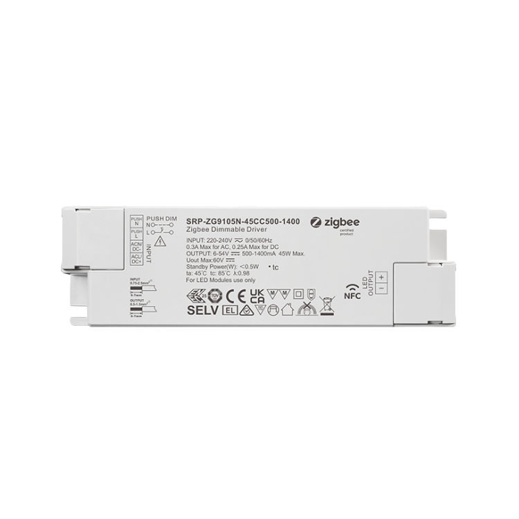 Οδηγός Zigbee 45W NFC 1 καναλιού σταθερού ρεύματος με δυνατότητα ρύθμισης φωτεινότητας