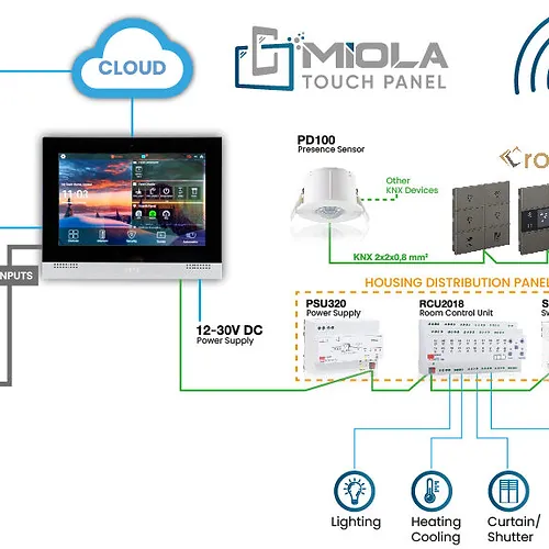 Ο πίνακας αφής Miola σας επιτρέπει επίσης να πραγματοποιείτε κλήσεις εντός των μονάδων διαμερισμάτων, ασφάλεια, διαχείριση τοποθεσίας και λήψη.
