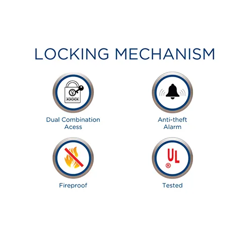• Συναγερμός κατά της κλοπής: Μετά από πολλές λανθασμένες προσπάθειες κωδικού πρόσβασης, το χρηματοκιβώτιο ξεκινά αυτόματα να εκπέμπει έναν ήχο συναγερμού για να υποδηλώσει μη εξουσιοδοτημένη είσοδο