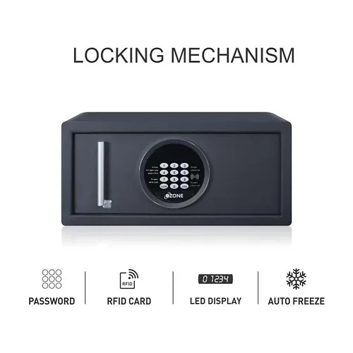 - Ψηφιακό χρηματοκιβώτιο κατασκευασμένο από χαλύβδινη κατασκευή, και 2 ατσάλινα μπουλόνια βολής που παρέχουν πρόσθετη προστασία.