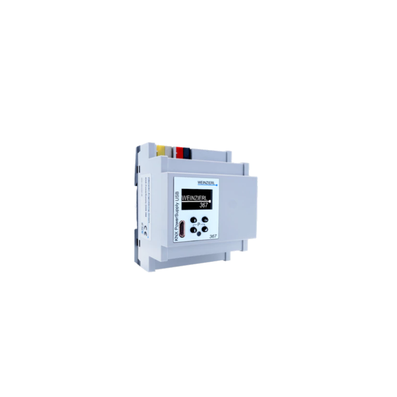 Το KNX PowerSupply USB 367 είναι ένα τροφοδοτικό διαύλου 640 mA με υψηλή απόδοση και μικρό αποτύπωμα μόνο 4 μονάδων (72 mm). Η συσκευή διαθέτει τσοκ διαύλου, ενσωματωμένη διεπαφή USB (υποδοχή Micro USB) και επιπλέον παρέχει έξοδο για βοηθητική τροφοδοσία.